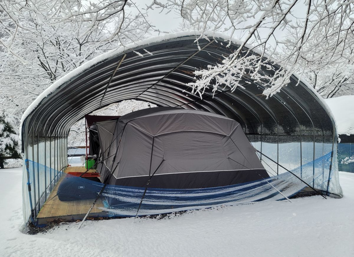 동계장박전경 본문 동계장박 고객 데크+타프존 설치 요청으로 설치 완료후 동계장박 전경입니다요청설치: 넓이6M x 길이8M x 높이 3.2M [타프존 설치: 3~4일 소요/데크 설치:2~3일 소요] 이전동계장박전경 다음동계 장박전경 목록